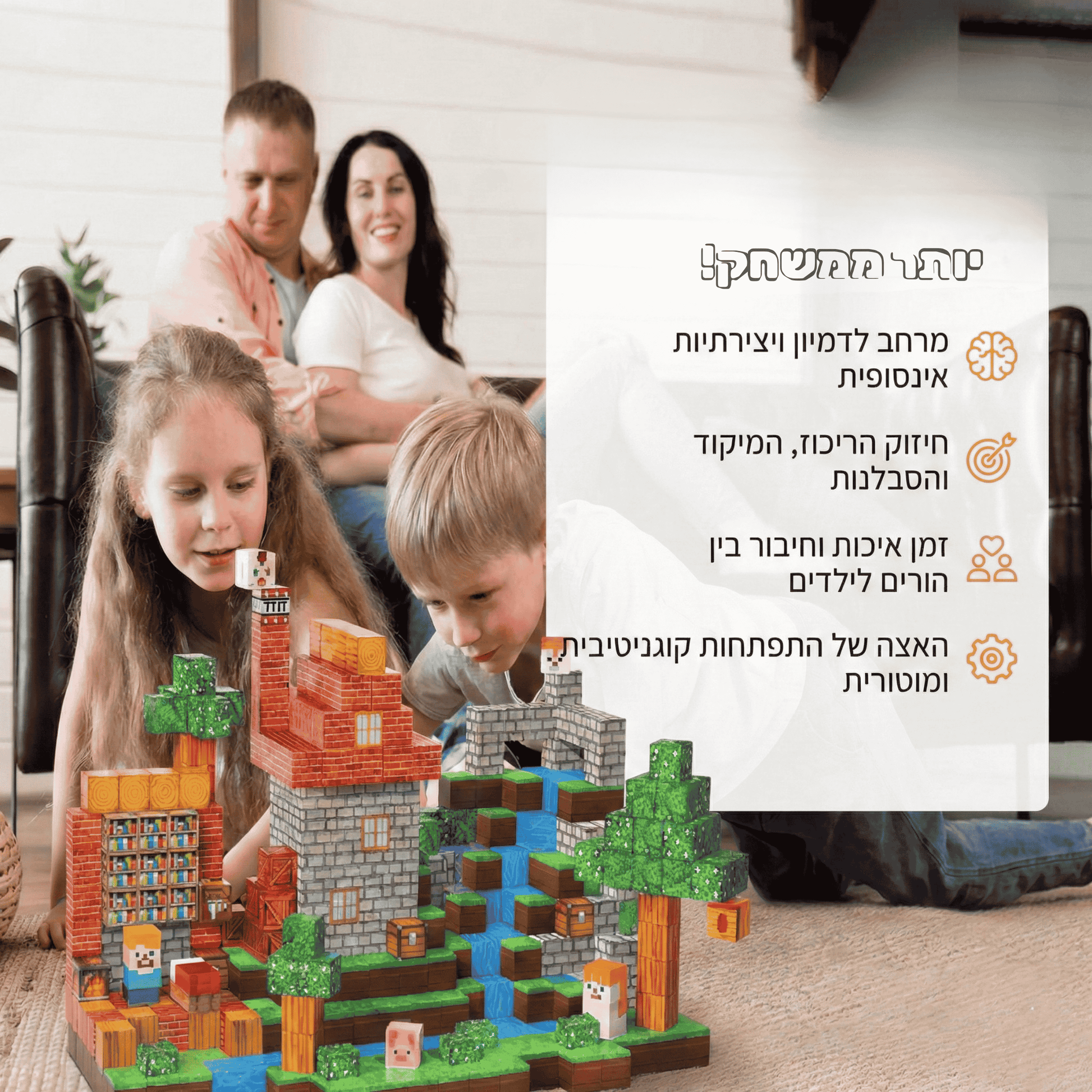 הילדים עפים על זה! כיף לראות אותם בונים יחד ולומדים לחלוק. הם נהנים מזמן יצירה איכותי ושקט מחוץ למסכים. ממליצה בחום!